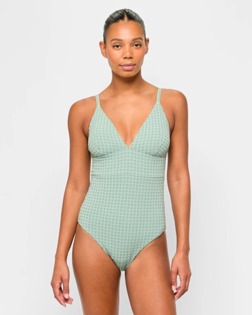 Plunge Smooth Honeycomb One Piece Bathers - Shape Your Body