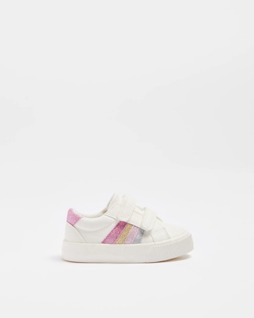 First Walker Baby Girls Double Strap 4 Glitter Stripe Sneaker
