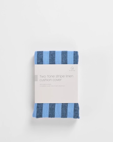 Two Tone Stripe Linen Stripe Cushion - Blue Bonnet