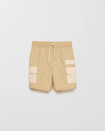 Cotton Linen Blend Textured Stripe Volley Shorts
