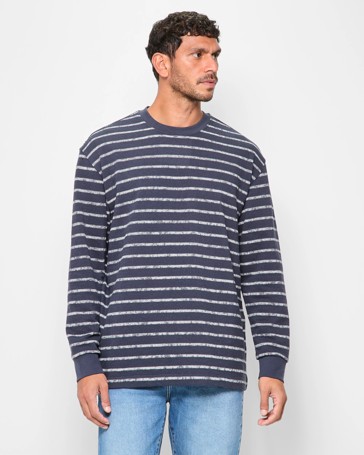 Australian Cotton Blend Long Sleeve Textured Stripe T-Shirt