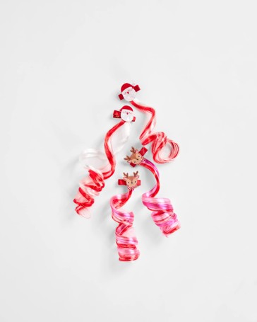 Kids Christmas 4 Pack Santa and Reindeer Faux Hair Clips