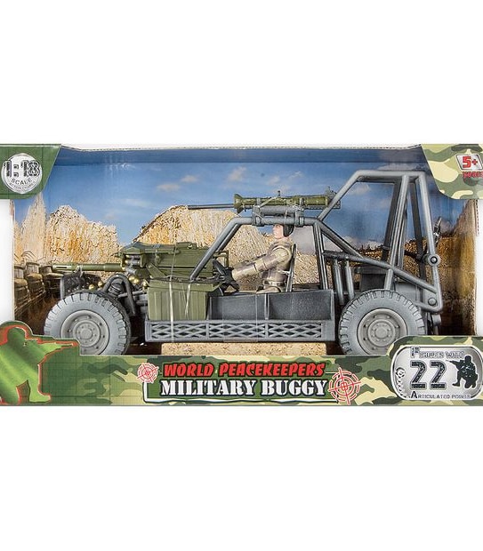 Includes: 1 x military figure, 1 x Military Buggy transport, plus accessories.