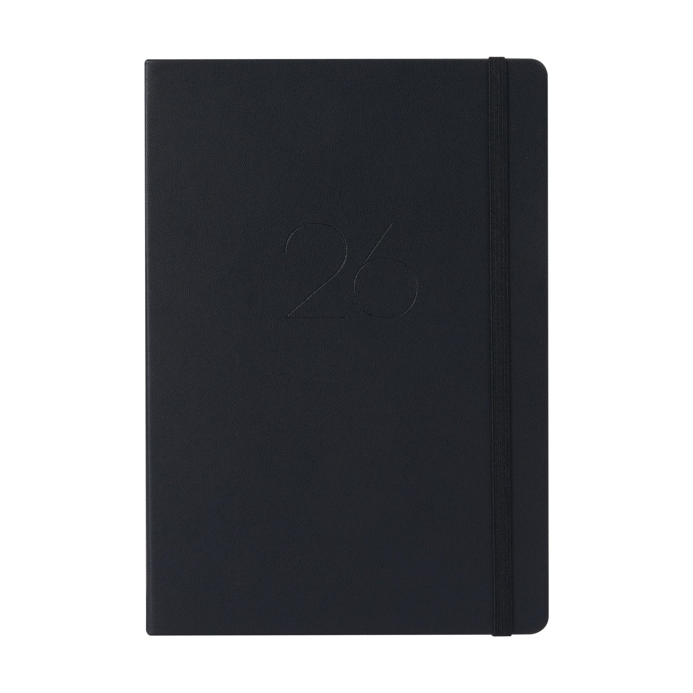 Start each day on the right foot with the 2026 Daily Diary in a classic black finish. Designed to fit perfectly on your desk or in your bag, this diary gives you ample space to jot down appointments, to-dos and personal notes. The practical layout offers views for daily, monthly, and yearly planning, keeping you one step ahead throughout the year. With ruled pages, a dedicated space for contacts, and a secure elastic closure, staying organised has never been easier. Whether you're at home, at work, or on the go, let this diary become your trusty companion for all your plans and goals. Treat yourself or consider it for someone special for the festive season – let 2026 be your most organised year yet.