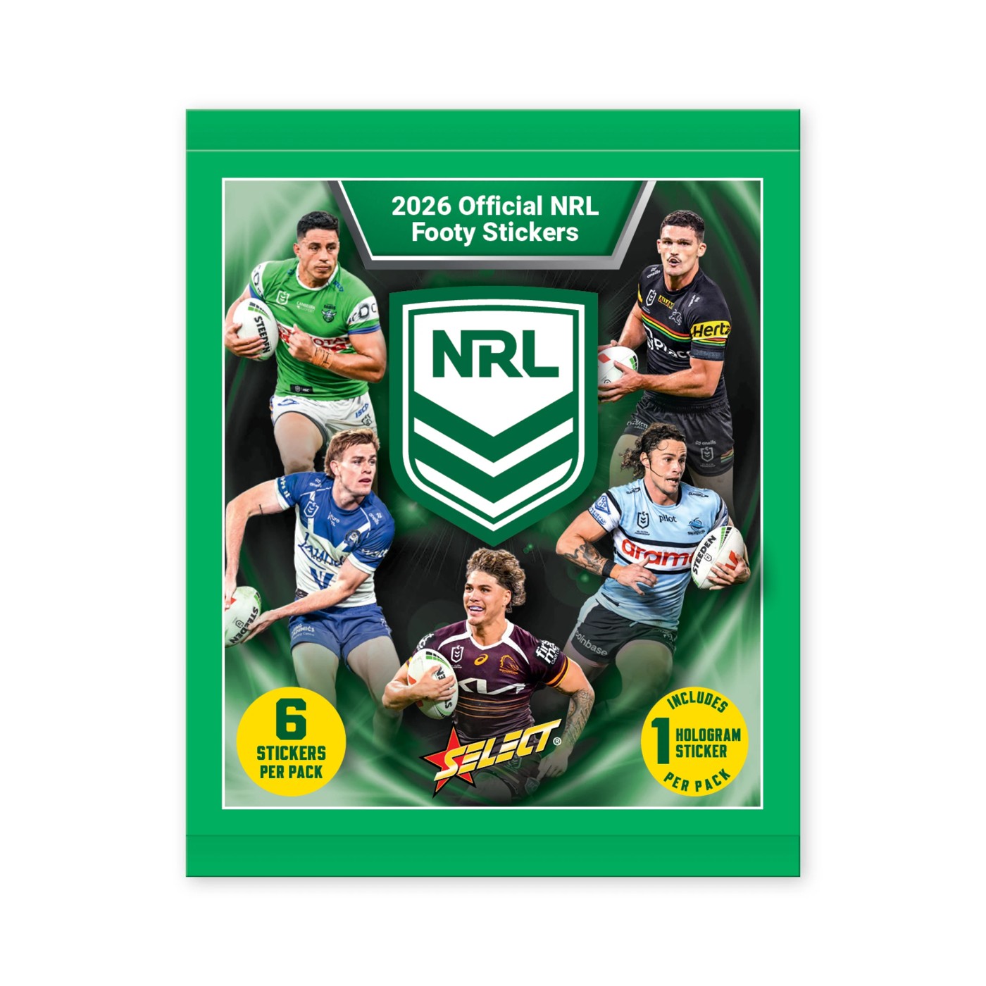Select and the NRL are bringing the thrill of the game straight to kids and collectors alike with the Select 2026 NRL Footy Sticker Collection! Each pack contains 6 random stickers, including an insert hologram. The stickers feature your favourite players, ready to bring your 2026 NRL Footy Sticker Book to life!