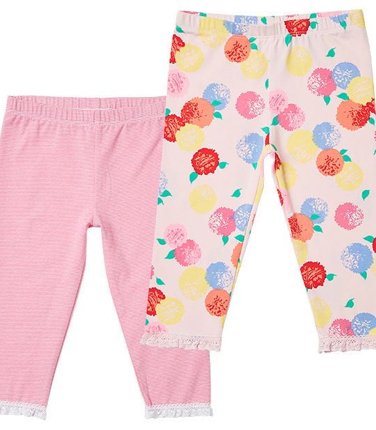 Offering great value for money comes our 2 pack of 3/4 length, lace trim leggings. Each pair of leggings features pretty lace trim, stretch for comfort and an elastic waistband.