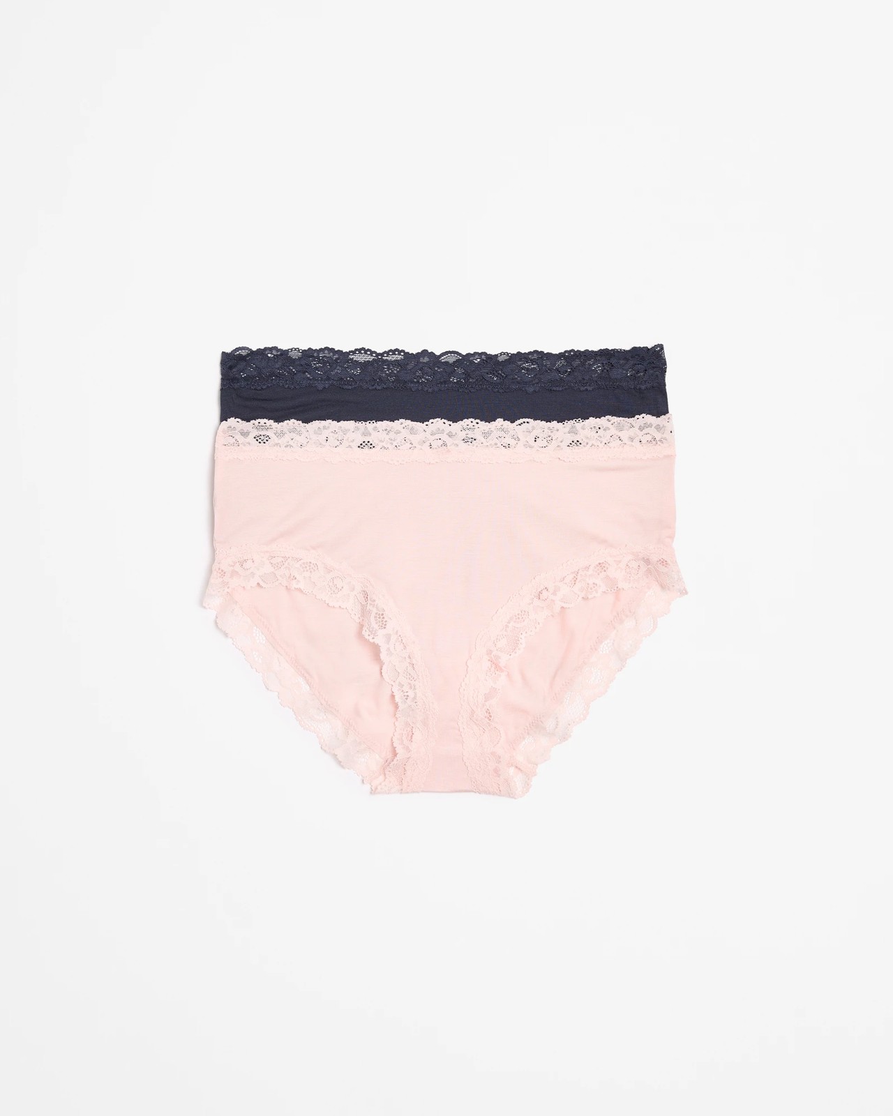 2 Pack Modal and Lace Midi Briefs - Graphite/Potpourri
