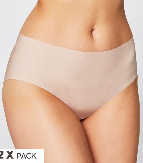 2 Pack No Show™ Laser Cut Midi Briefs - Taupe