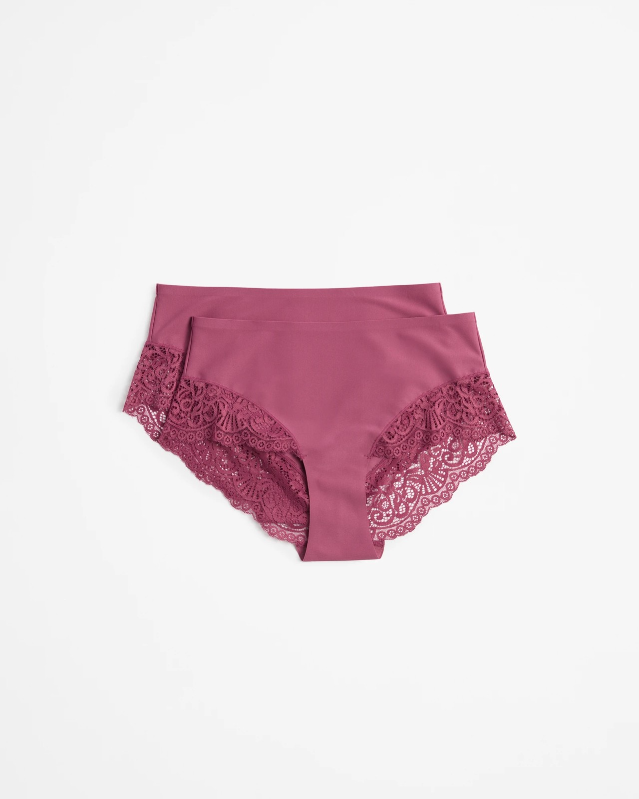 Discover unmatched comfort and style with our 2 Pack Smooth Touch Lace Bonded Waist Midi Briefs. These briefs are made from nylon-rich fabric, featuring elastane for added stretch, ensuring a smooth, comfortable fit. The flat bonded waist prevents rolling, and the intricate lace detail around the legs adds a feminine touch. With a full back coverage and low-cut legs, these briefs are perfect for everyday wear. This great value 2-pack sits just below the waist, providing both style and comfort.
