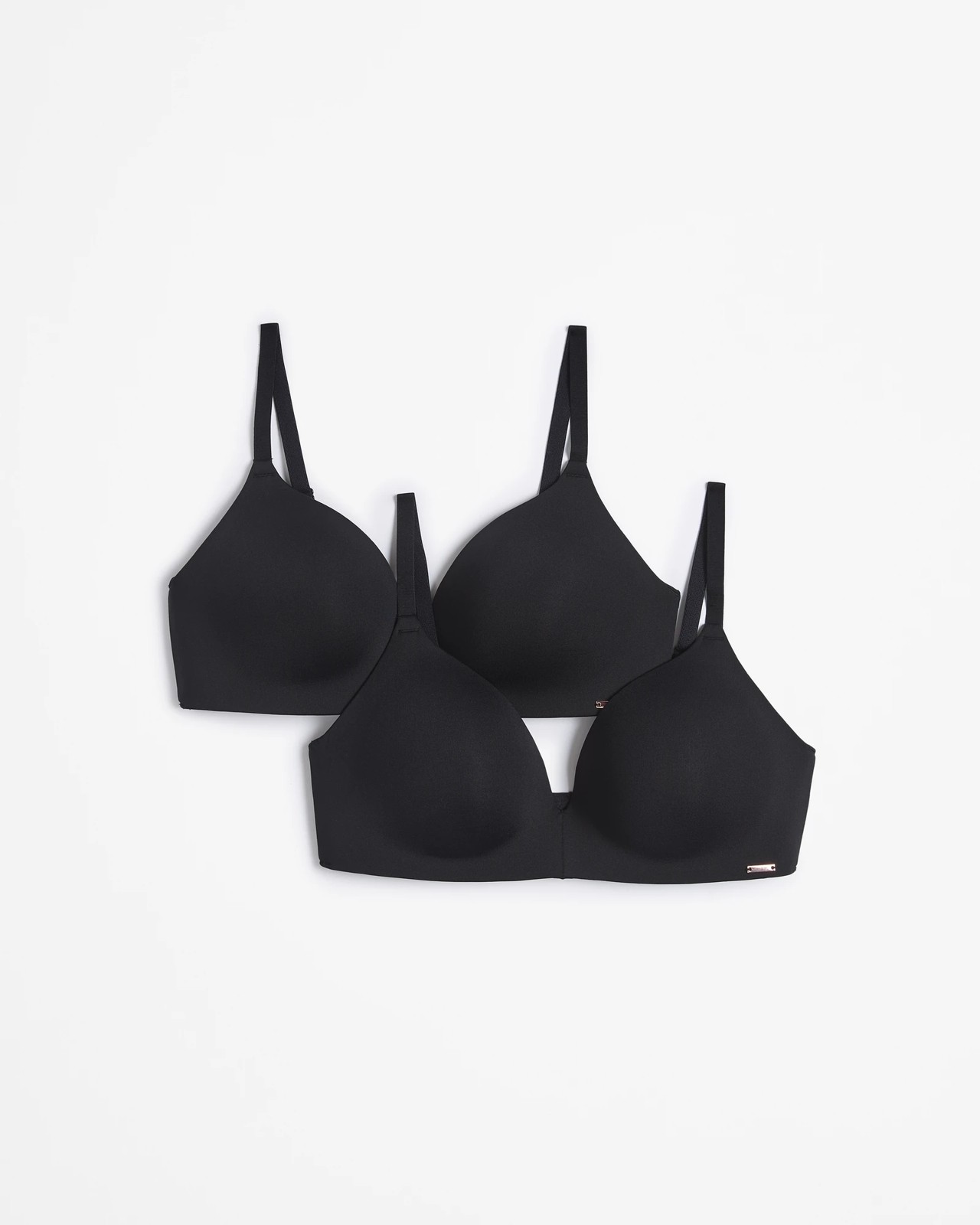Discover the epitome of everyday ease with our 2 Pack Wirefree T-Shirt Bras. Made from a nylon-rich fabric blend with added elastane, these bras ensure maximum stretch and comfort. The classic fit and stylish plunge neckline flatter your figure, while adjustable thin shoulder straps and full coverage cups offer a customised fit. Enjoy the freedom of wire-free padded cups accented with a rose gold charm on the hemline. Featuring a convenient back hook and eye closure, these bras are perfect for daily wear. Treat yourself to unmatched comfort and style.