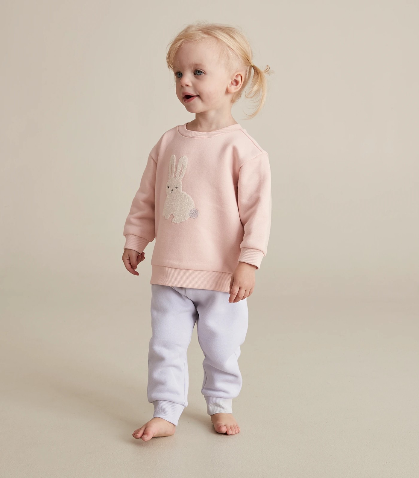 A great addition to bubs Easter wardrobe comes the 2 Piece Baby Boucle Bunny Set, featuring a pink jumper with boucle bunny print to chest and lilac trackpants, both with fleece lining for extra comfort and warmth.