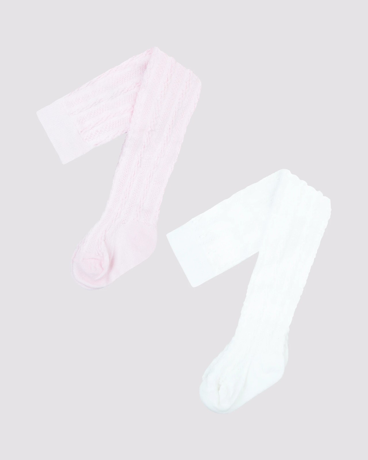 Underworks Baby 2 Pack Cotton Textured Tights - Pink/White