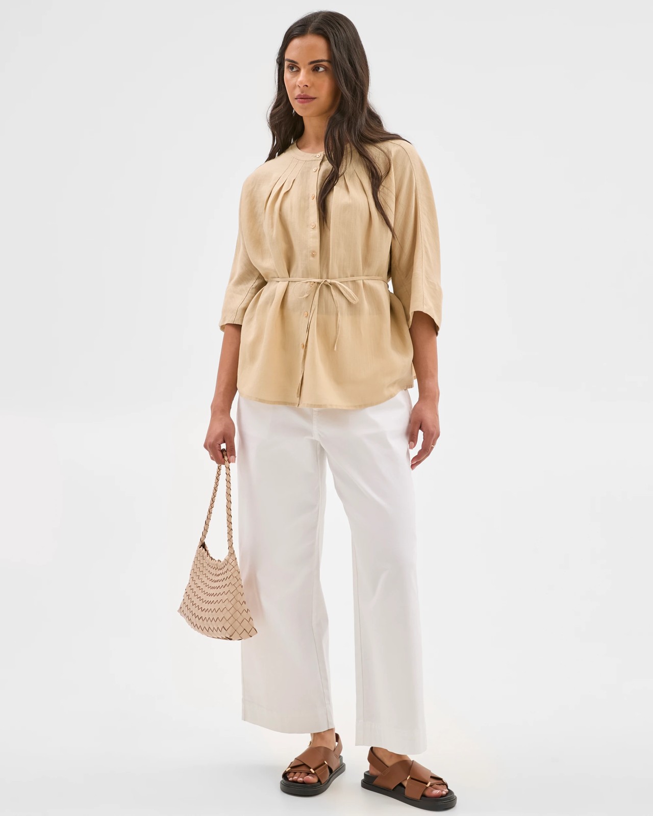 Enjoy an elevated sense of everyday style with this lovely tie waist blouse. It offers a comfortable regular fit and features three quarter sleeves, making it ideal for both casual outings and more polished occasions. The button-through design and Mandarin collar introduce a touch of modern flair, while the tie at the waist lets you achieve your perfect fit. The soft fabric ensures you feel great from morning to evening. This blouse is an effortless way to refresh your wardrobe, so why not give it a try and discover your next favourite top?
