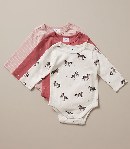 Crafted using soft certified organic cotton that's grown free from harmful chemicals, is soft to touch and comfortable to wear comes this great value 3 Pack Baby Organic Cotton Bodysuits makes for a great gift or for your own bubs.