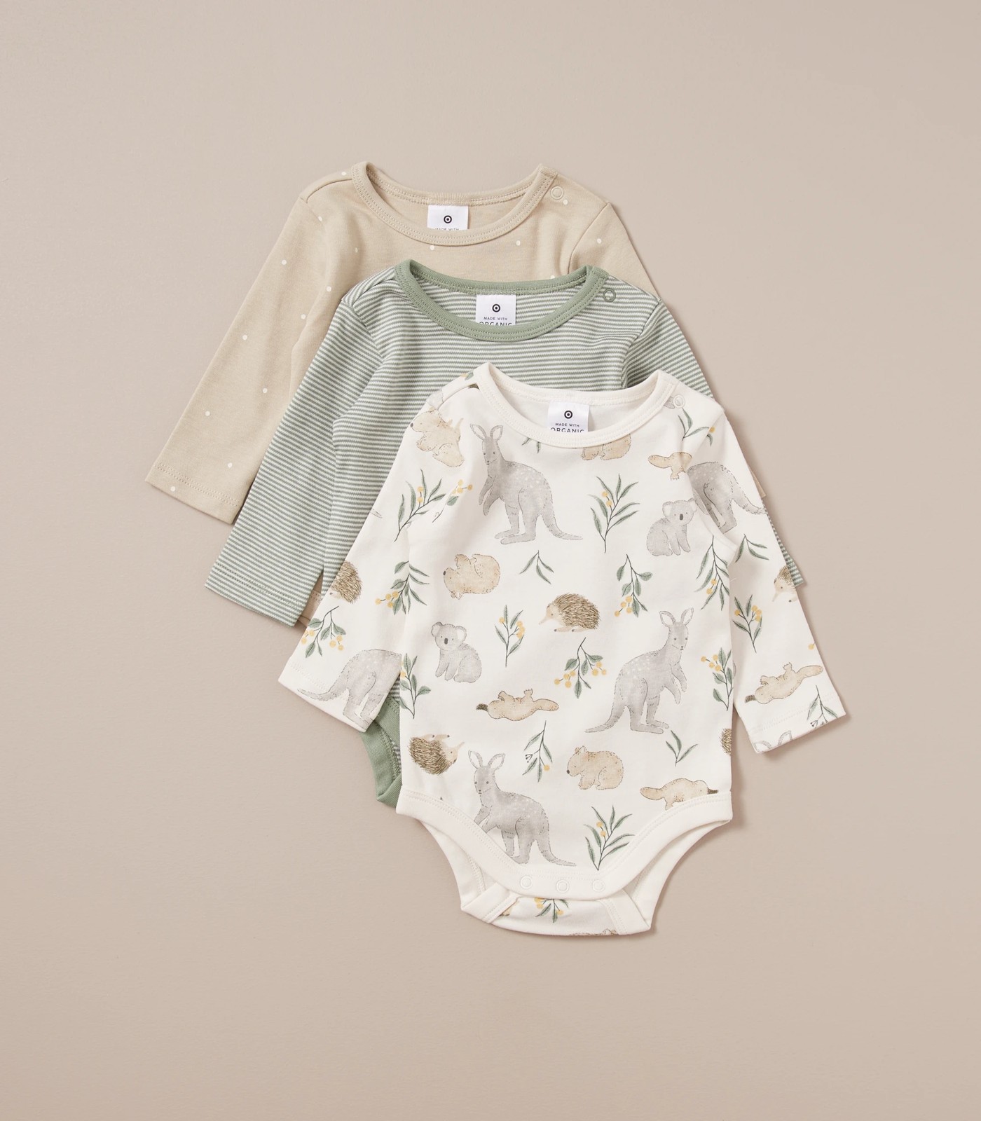 A great basic to have in the change bag, the 3 Pack Baby Organic Cotton Bodysuits are crafted from certified organic cotton that's grown free from harmful chemicals, is soft to touch and comfortable to wear.