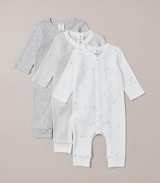 Crafted from soft organic cotton and in a handy multi-pack, comes the 3 Pack Baby Organic Cotton Snap Coveralls. Featuring long sleeves, full snap stud closure and in a variety of colours and prints.