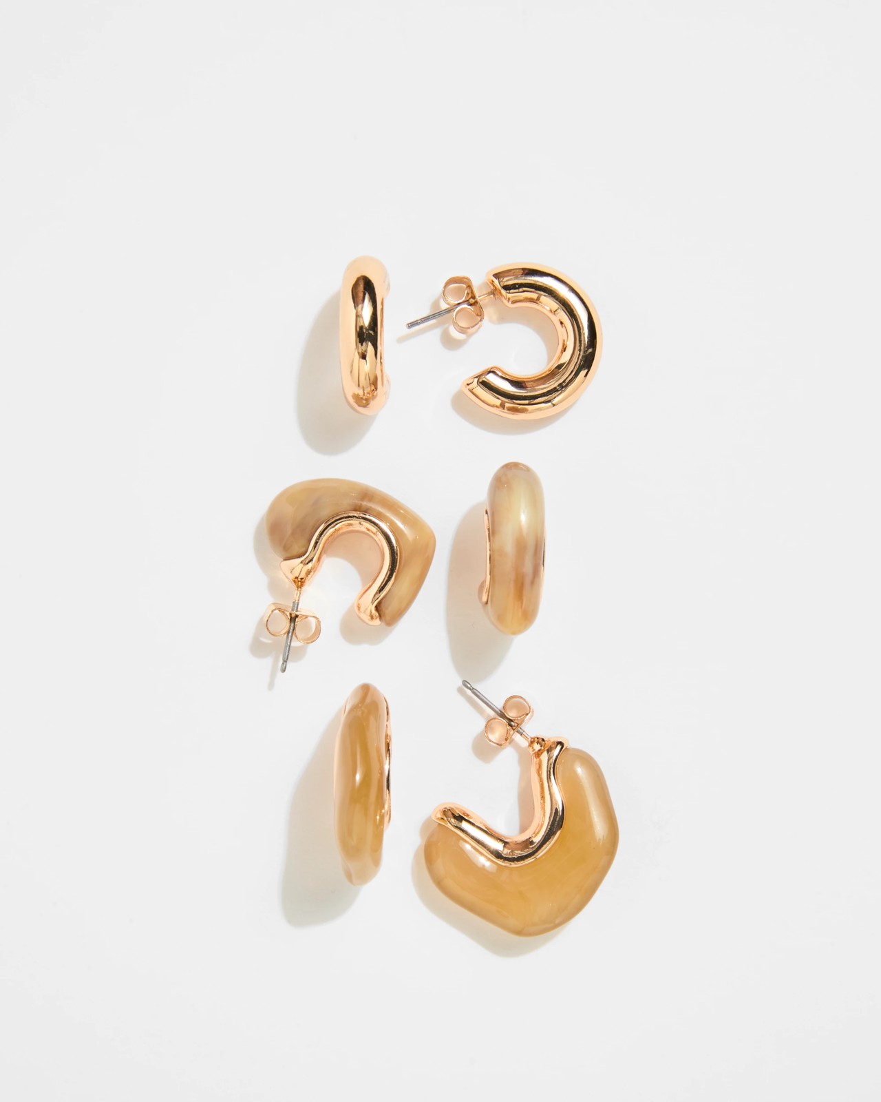 3 Pack Chunky Resin Hoop Earrings - Chocolate