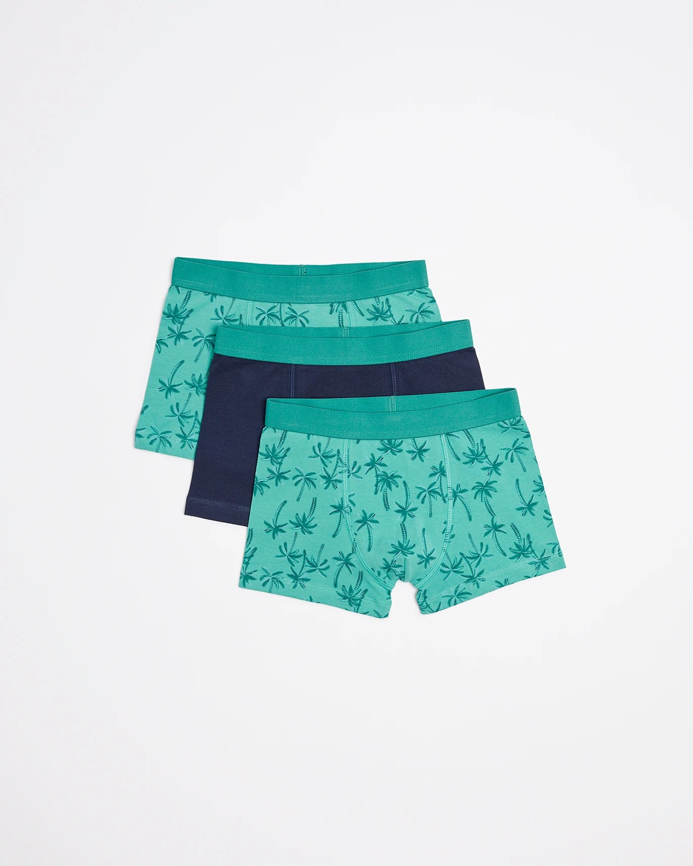 Introducing the 3 Pack Essential Trunks for boys! These trunks are crafted from a soft and breathable cotton blend that is sure to keep them comfortable all day long. With a regular fit, they feature a variety of palm prints in green multi for added style. Perfect for everyday wear, these trunks provide the perfect combination of comfort and style.