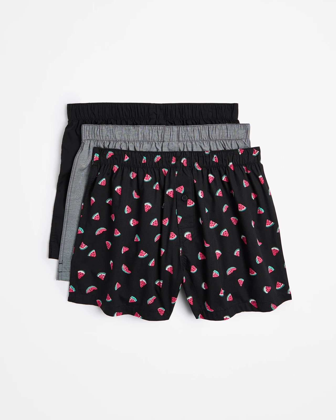 Experience ultimate comfort with our Maxx woven boxer shorts. These shorts are meticulously designed from breathable cotton, ensuring you stay cool and cosy all day. The pack includes three stylish designs: watermelon, micro stripe and classic black. Each pair features a soft, elastic waistband and a functional button fly, making them as practical as they are comfortable. Enjoy the perfect fit with the short length and small side seam splits. Treat yourself to everyday luxury with this fantastic value pack.