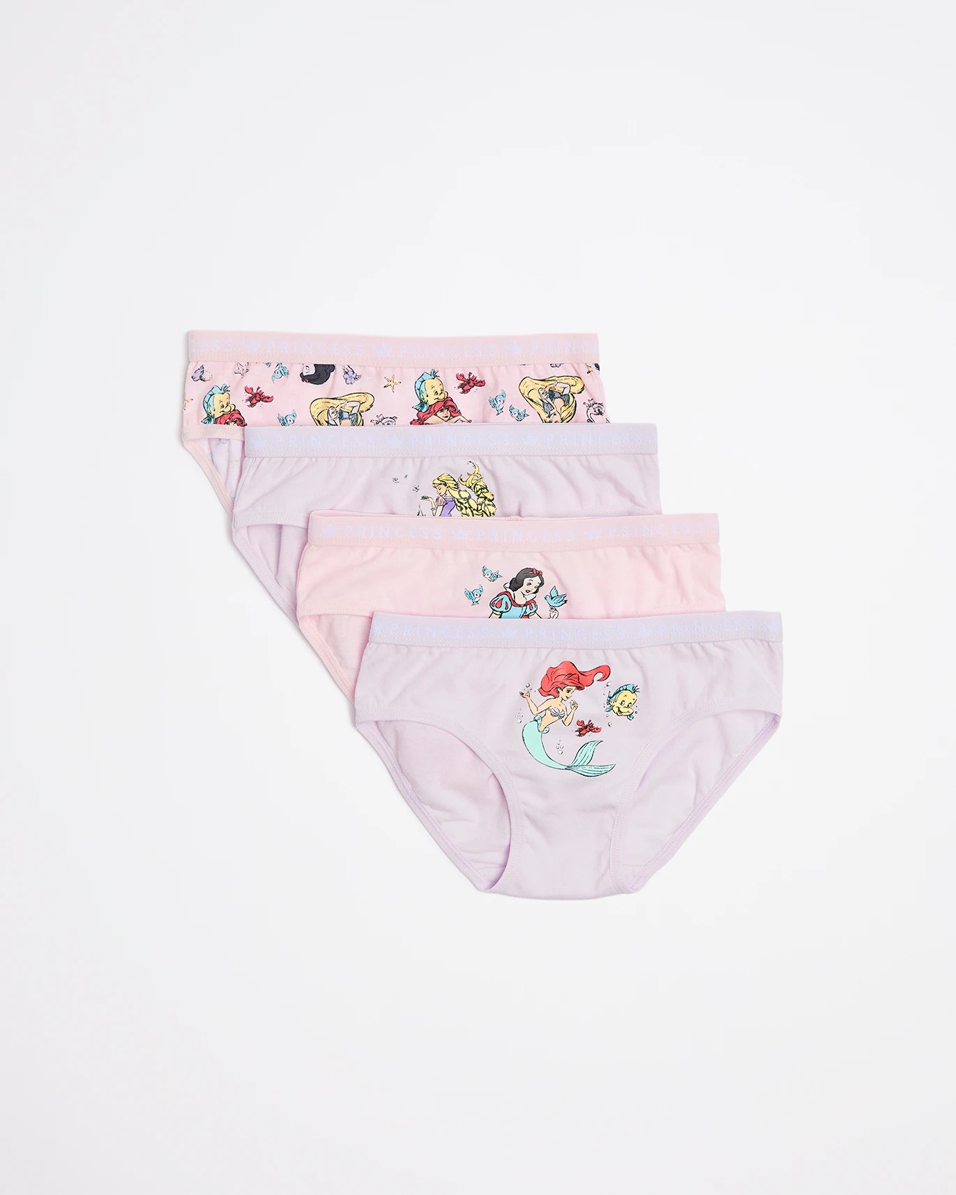 Make her dreams come true with 4 Pack Disney Princess Briefs! These briefs are made from a cotton rich blend for maximum comfort, and feature a regular fit that's perfect for everyday wear. The elastic waistband ensures a snug fit, and the variety of Princess prints make it easy to mix and match. She'll love the pink coloring that adds an extra touch of fun to these briefs. Get ready to make her day with 4 Pack Disney Princess Briefs!