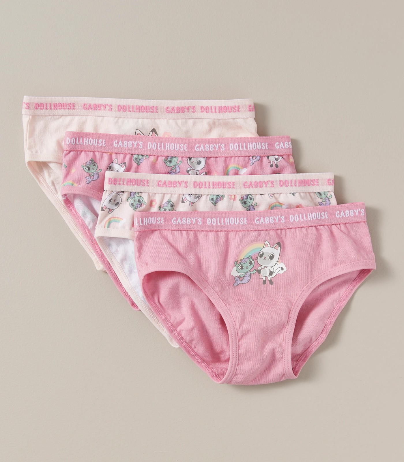 Fans will love the pink 4 Pack Gabby's Dollhouse Briefs, featuring an elastic waistband and a variety of Gabby's Dollhouse prints, crafted from soft cotton for all day comfort.