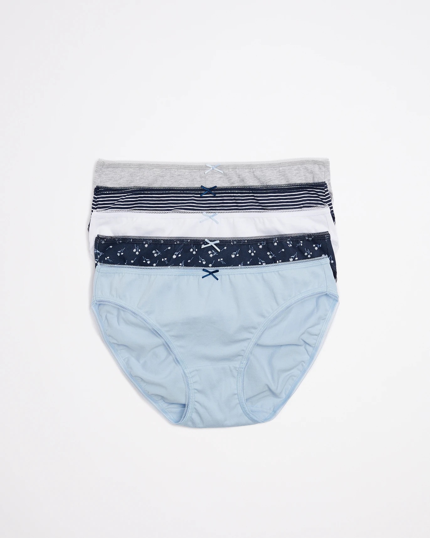 A wardrobe staple, this value 5 pack of bikini briefs provide a classic cut suitable for all body shapes. They sit higher on the hips with a low rise and offer full back coverage.