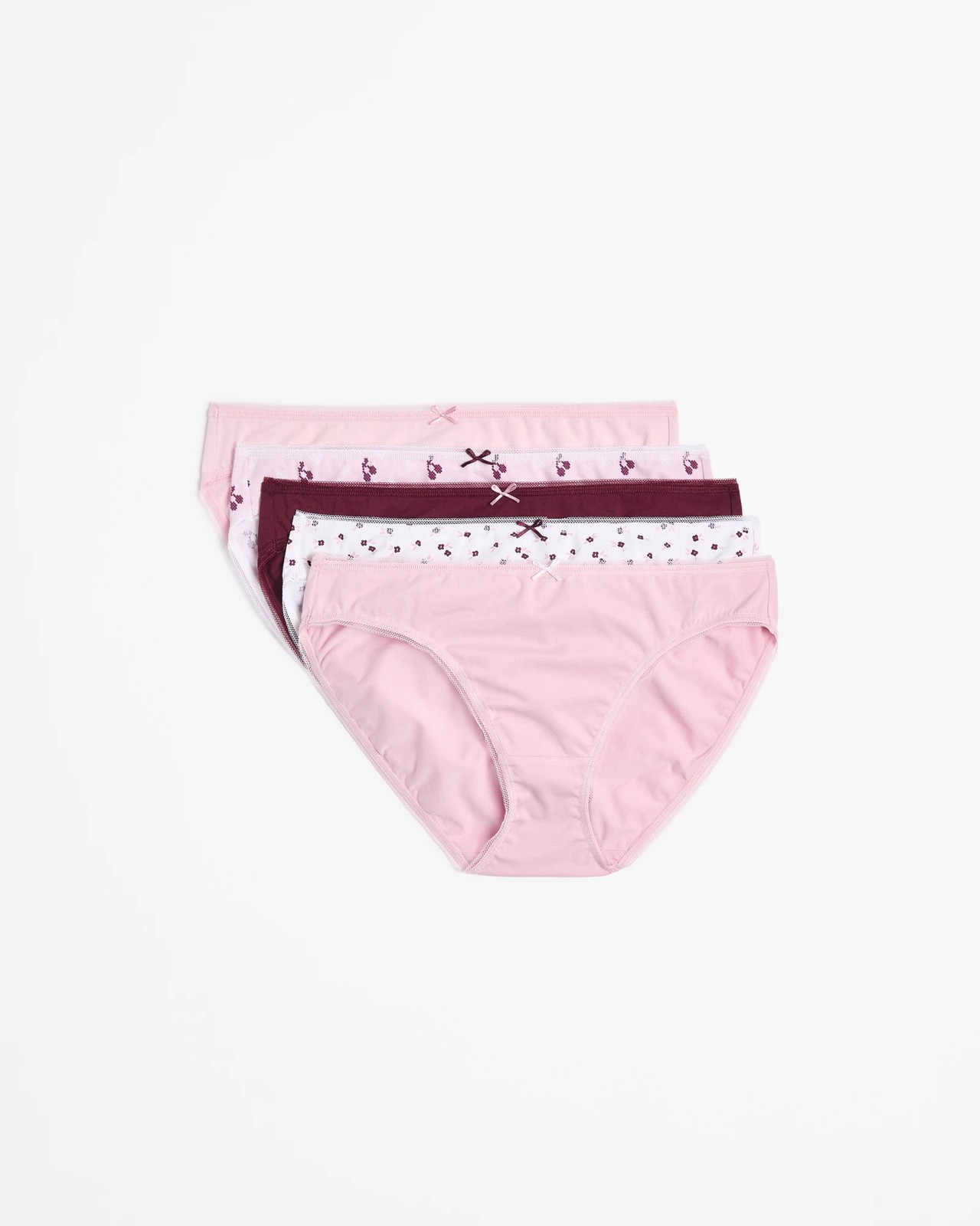 Enhance your comfort with these 5 Pack Cotton/Elastane Bikini Briefs for women. Designed from a cotton-rich blend with added stretch elastane, these briefs provide a soft and breathable fit. Featuring a regular fit and bikini cut, they come in a convenient value pack of five. The low-rise waist is paired with a thin elastic waistband and a decorative bow at the centre. The scalloped trim around the waist and legs adds a charming detail, while the mid-cut leg and full back coverage ensure you stay comfortable all day. Presented in a box, these briefs are perfect for everyday wear.