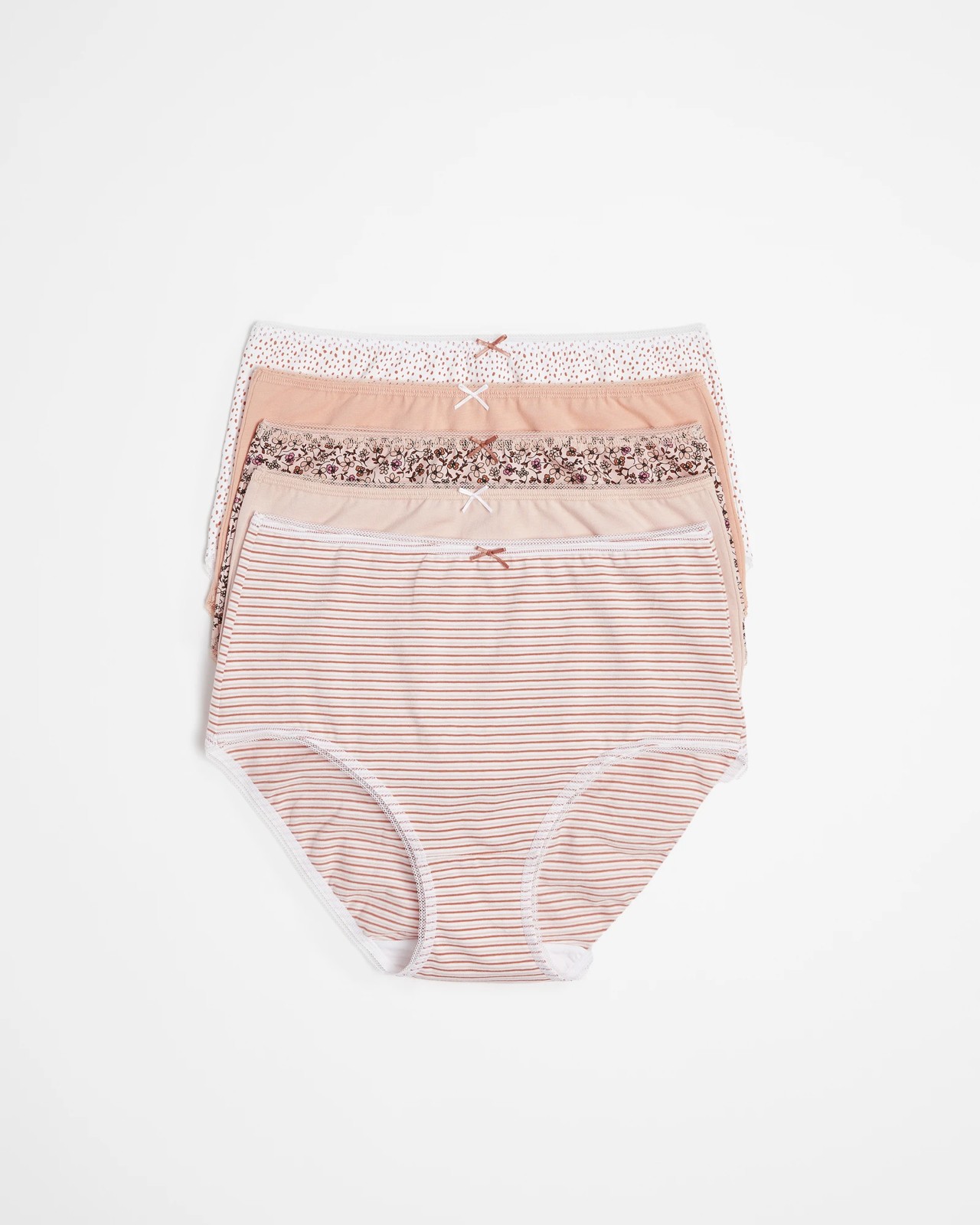Introducing Target Woman's 5 Pack Cotton/Elastane Full Briefs! The perfect blend of comfort and style, these full briefs are crafted from a cotton rich fabrication for a soft feel and stretch for added comfort. The thin elastic waistband is adorned with a stylish scalloped trim and decorative bow, while the full cut sits at the waist and offers low cut leg with full back coverage. Perfectly boxed up for presentation, these briefs are sure to become your must-have everyday essential. Avoid any embarrassment or discomfort - choose Target Woman's 5 Pack Cotton/Elastane Full Briefs!
