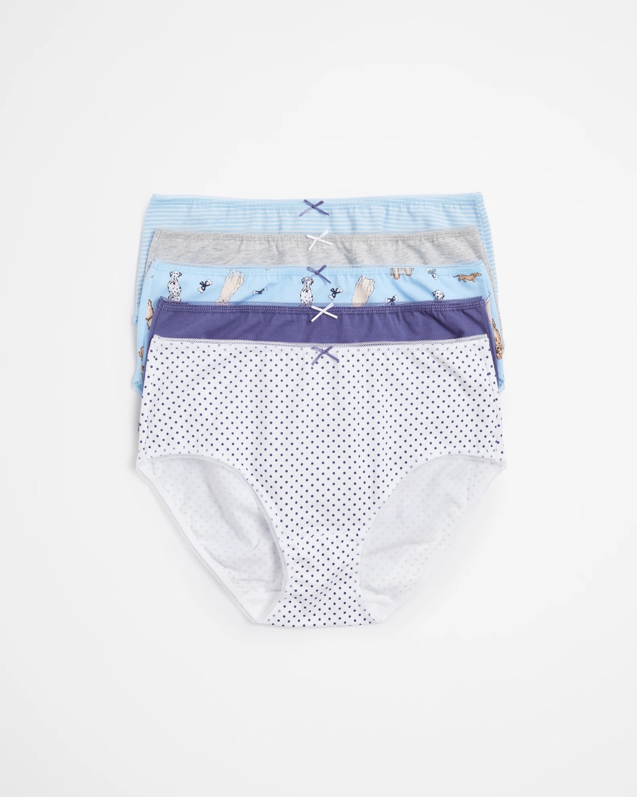 Soft and comfortable, these 5-pack Midi Briefs from Target Woman are perfect for everyday wear. Crafted with a cotton rich fabrication and stretch for comfort, they feature a midi cut with a thin elastic waistband that has scalloped trim and a decorative bow. These briefs sit just below the waist for a flattering fit, with low cut legs and full back coverage. Presented in an attractive boxed presentation, these Target Woman briefs are an essential wardrobe staple.