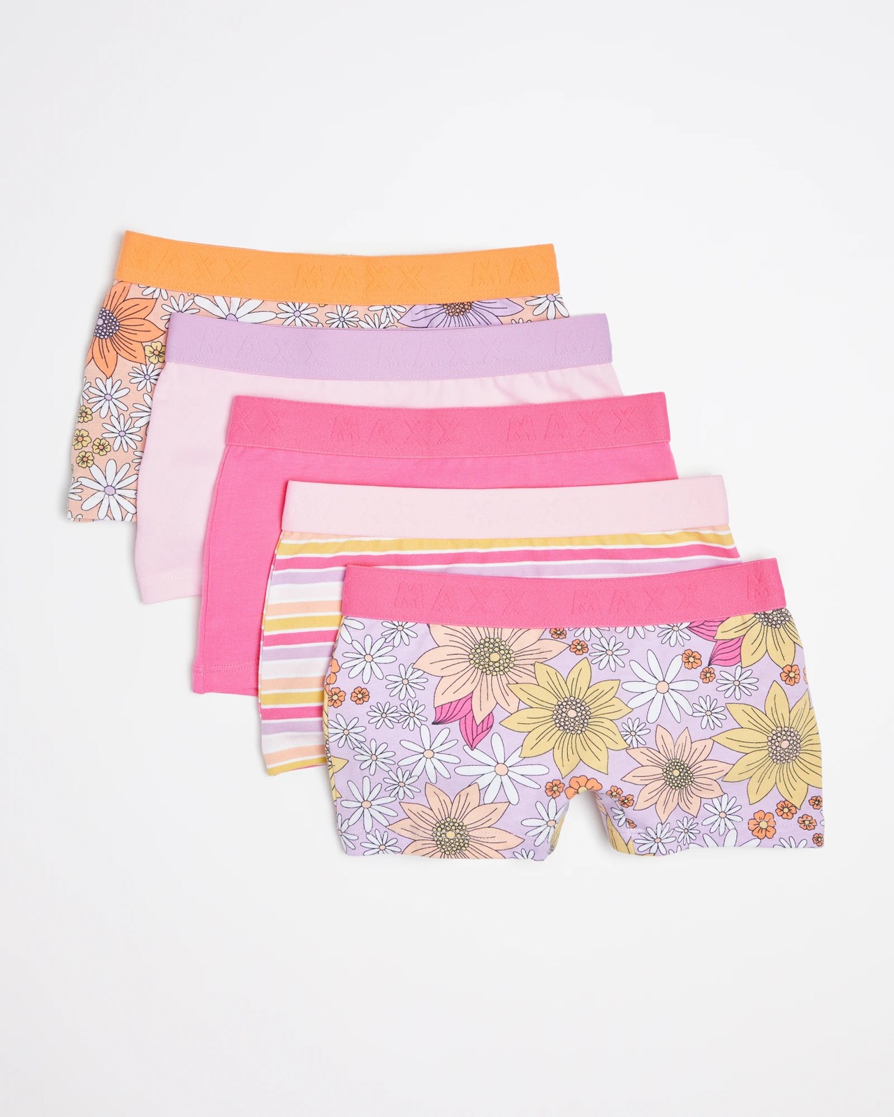 Maxx out her wardrobe with these 5 Pack Maxx Floral Shortie underwear. Crafted from a cotton rich blend for a softer feel, these regular fit shorts feature a wide elastic waistband to keep them in place all day long. Choose from a variety of colors and floral prints to bring her look together. Perfect for everyday wear, she'll be comfortable and stylish in these Maxx Floral Shorties!