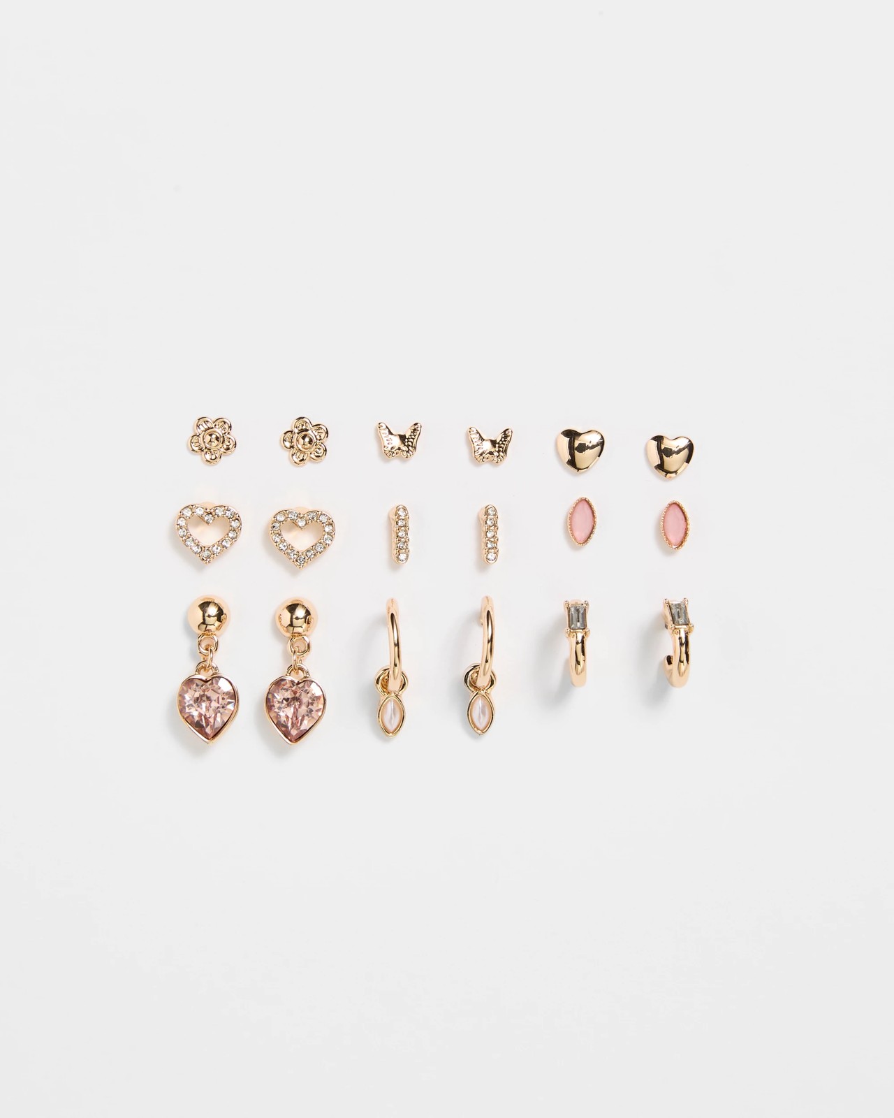 Treat yourself to a delightful splash of style with the 9 Pack Pretty Peach Stud Earrings. This charming selection brings nine unique pairs into your jewellery box, letting you effortlessly change up your look every day. Each earring features a mix of shapes, sizes and finishes, all in a beautiful gold colour with coloured stones or a touch of sparkle. Easy-to-wear butterfly back clasps make getting ready a breeze, and their small size means they are comfortable for all-day wear. Whether you are heading out for brunch or adding a little flair to your everyday outfits, these versatile earrings suit any occasion. Enjoy great value and endless styling possibilities – simply pop on a pair and enjoy an instant boost of confidence. Update your collection today and discover how easy it is to shine.