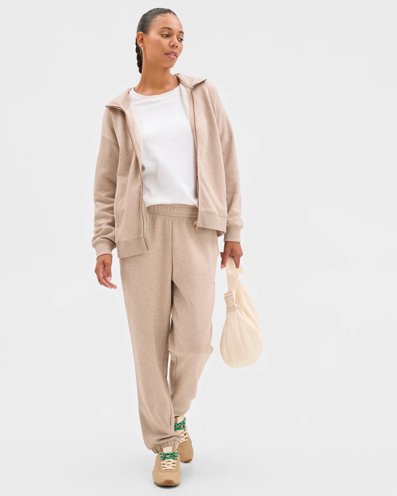 Active Australian Cotton Blend Fleece Zip Through Hoodie - Mushroom Marle