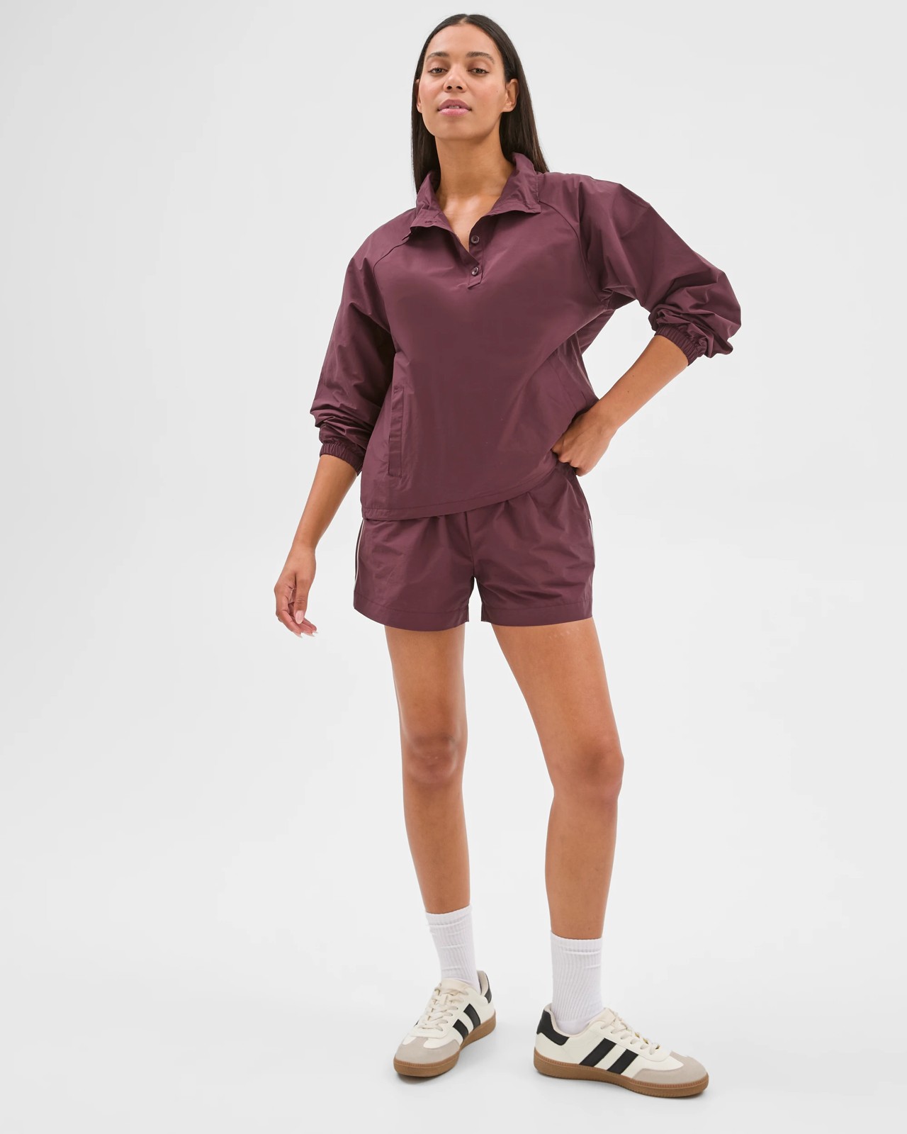 Active Australian Cotton Blend Woven Polo Anorak - Wine