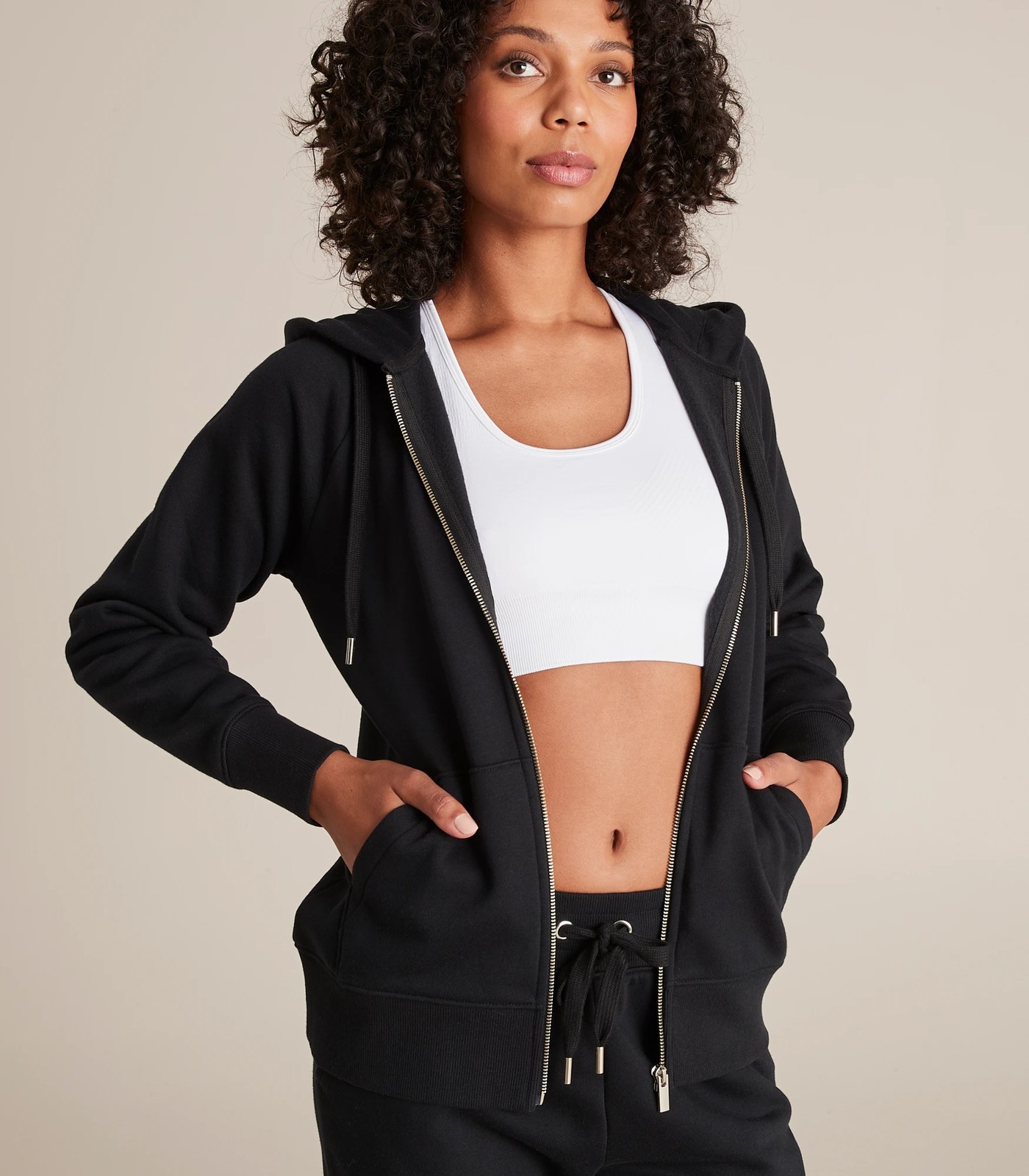 For a great everyday cover up, the Active fleece hoodie will be worn over and over. It features a round hooded neckline, a zip through front and long ribbed cuff sleeves.