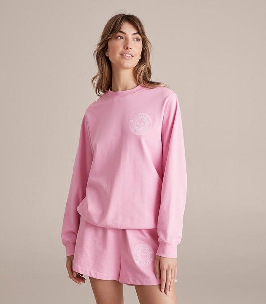A great throw on when you are headed to the gym or just heading out, the Active french terry long sleeve crew jumper has a crew neckline, long sleeves and an embroidered front print.