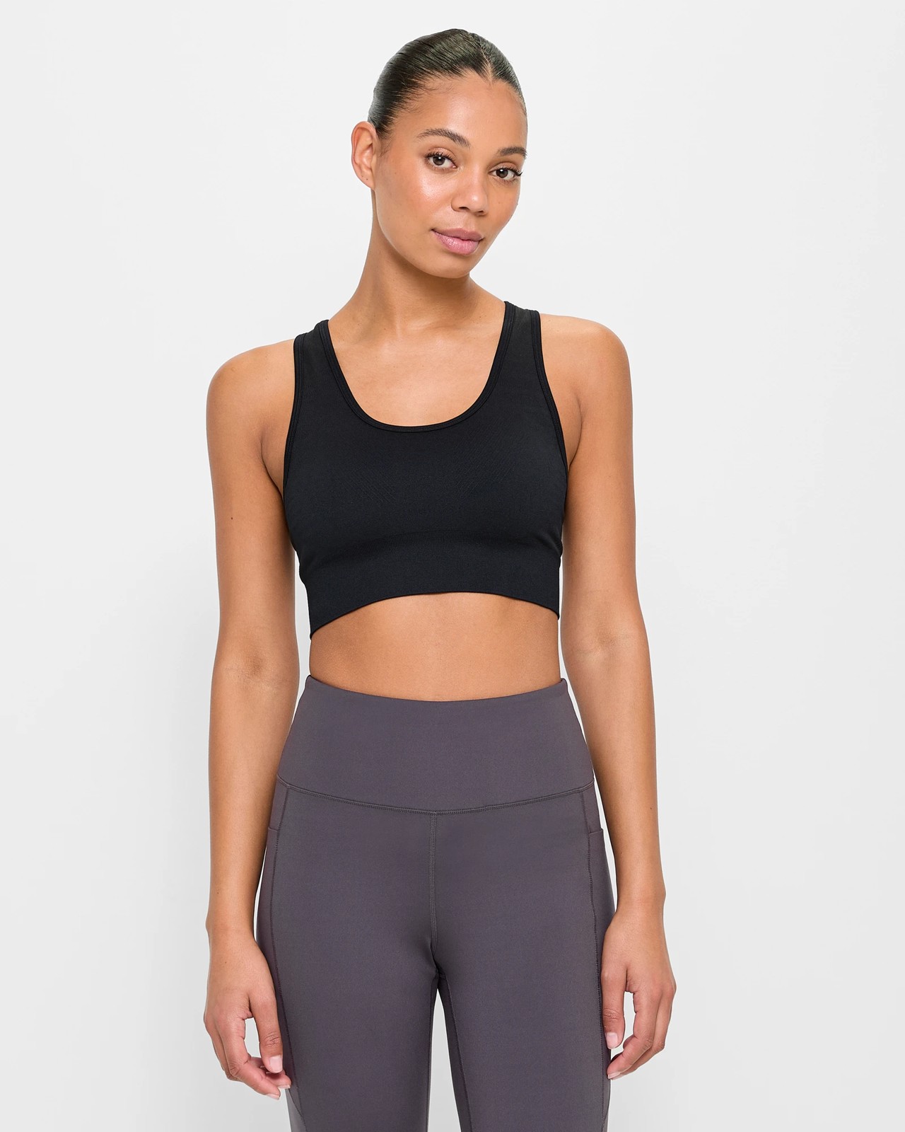 Improve your workout experience with the Active Harmony Seamfree Crop Top. Embrace comfort and style with its stretchy, moisture-wicking fabric that keeps you dry during your exercises. Ideal for yoga or pilates, the slim-fit design and textured pattern make you stand out. Say goodbye to distractions with the wire-free and removable padded cups, while the wide ribbed under-bust band offers extra support. Don't miss the chance to feel confident and move freely with the Seamfree technology. Upgrade your active wardrobe today!