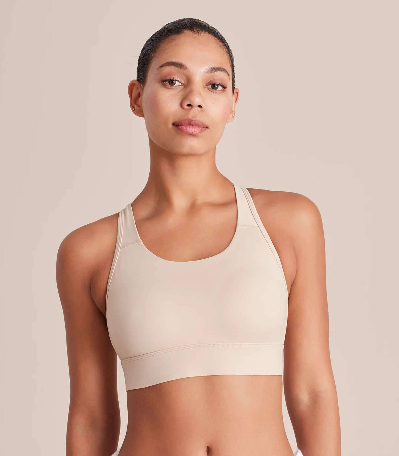 This nude Active high impact, wirefree sports bra is designed with comfort in mind. Ideal for exercise like pilates and yoga, it also has moulded padded cups full coverage and has a thick underbust band for support.