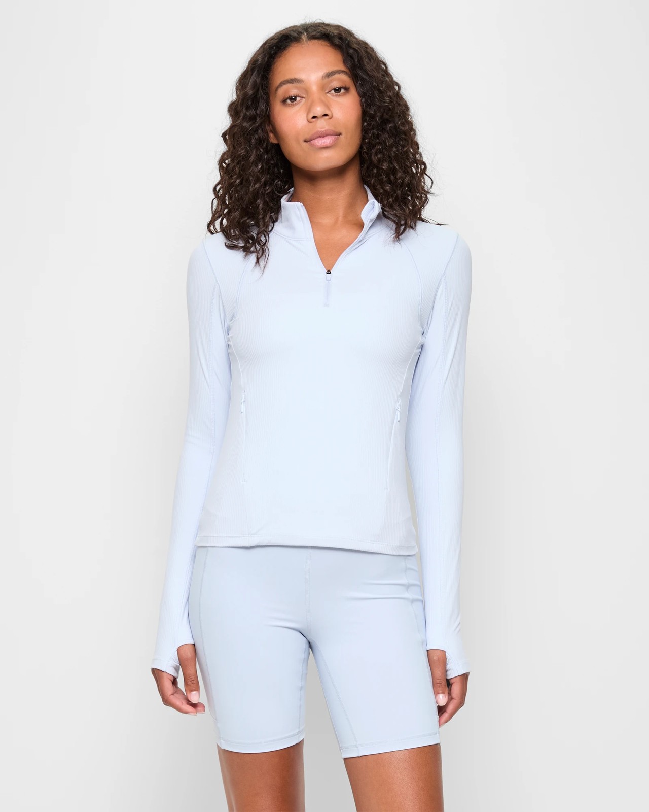 Enhance your runs with our Active Performance Long Sleeve 1/4 Zip Running Top. This top is made from a nylon-rich fabric blended with stretch elastane to provide ultimate comfort. A chic ribbed design and a slim fit ensure you stay stylish during your workout sessions. The high round neckline and 1/4 zip front add functionality, while long sleeves with thumb holes bring in added convenience. Plus, invisible side zip pockets offer a secure place for your essentials. Get ready to upgrade your athletic wardrobe with this essential running top!