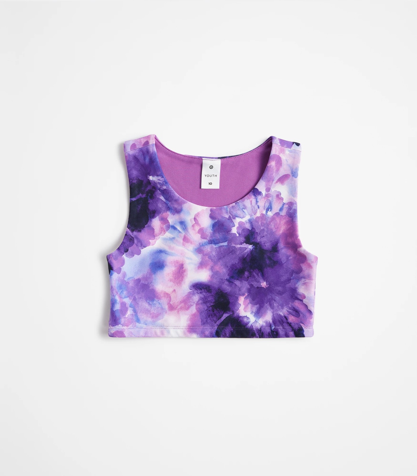 Introducing our Active Recycled Crop Top, the perfect choice for style-conscious girls who care about the environment. Crafted using recycled materials, this crop top not only looks great, but also helps reduce waste. The fitted design and wide elastic waistband provide a comfortable and secure fit, while the moisture-wicking fabric keeps you cool and dry during workouts. The vibrant purple tie-dye pattern adds a fun and trendy touch to your activewear collection. With a round neck, racer back, and fully lined construction, this crop top offers both style and support. Upgrade your fitness wardrobe with our eco-friendly Active Recycled Crop Top and join the movement for a greener future!