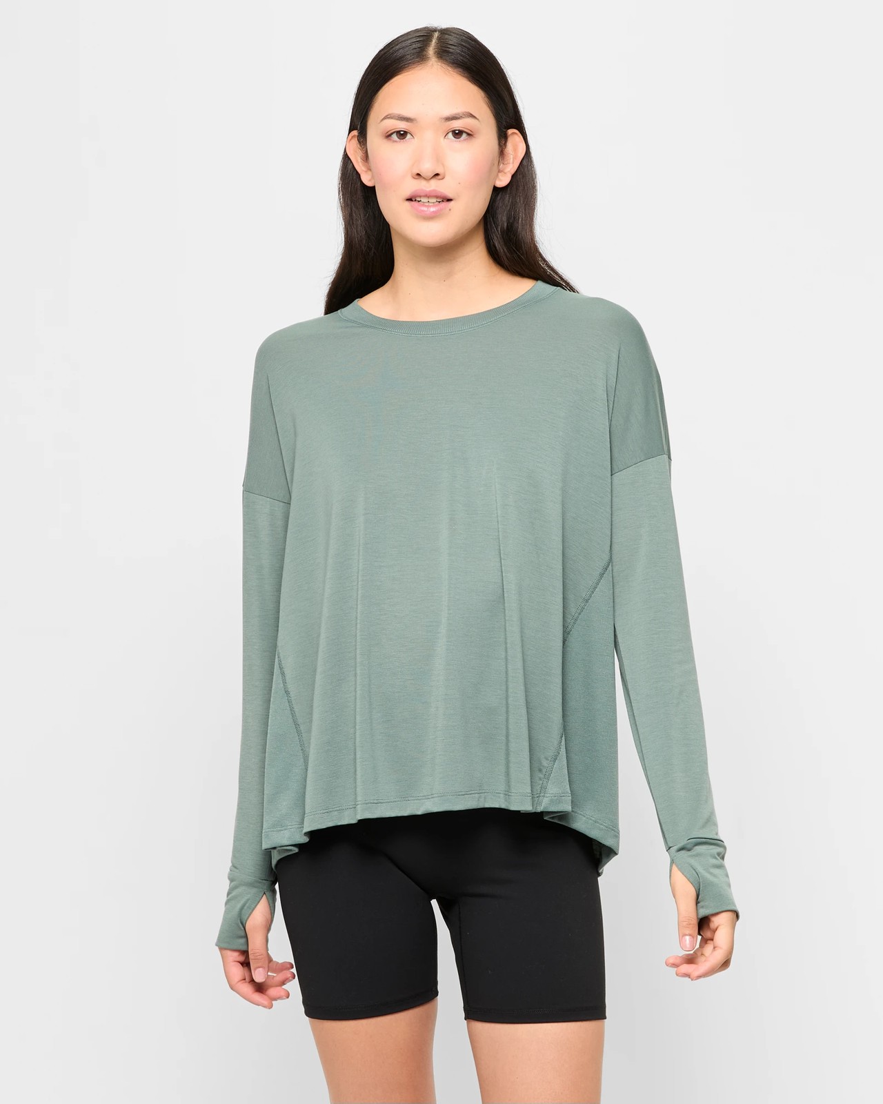 Discover the perfect blend of comfort and style with our Active Relaxed Flowy Long Sleeve Top. Created from a mix of polyester and lyocell, this top offers a stretchy fit thanks to elastane, ensuring maximum comfort. Its design is lightweight and breezy, featuring a crew neckline with ribbed detailing, long sleeves with ribbed cuffs, and side panels. The high-low hemline adds a trendy touch, making it an essential piece for both active days and relaxed moments. Upgrade your wardrobe with this versatile top.