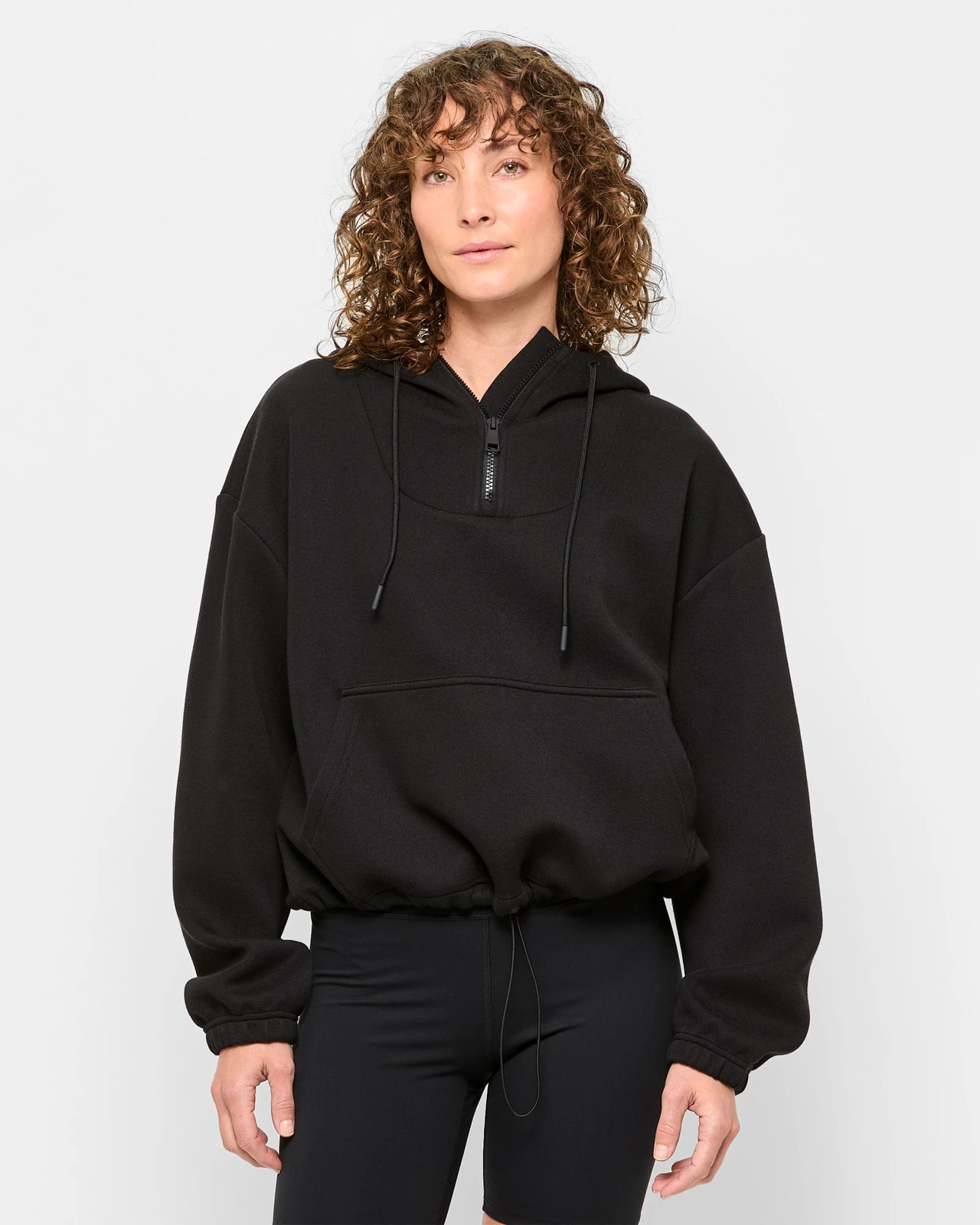 Round hooded neckline with drawstring