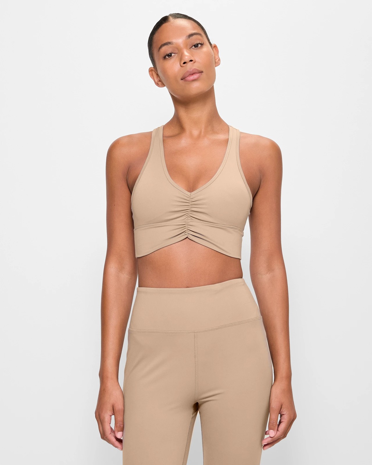 Explore a new realm of style and comfort with our Active Studio Soft Ruched Plunge Crop Top. Whether you're hitting the gym or flowing through your yoga practise, our crop top is your perfect companion. Enjoy the moisture-wicking fabric that keeps you dry and comfortable, while the moulded padded cups ensure a smooth bust shape under clothing. Delight in the soft elastics and stretchy material that offer a snug fit, enabling you to move with ease. Elevate your activewear with our Crop Top, where fashion meets functionality. Don't miss out on the chance to upgrade your workout wardrobe!