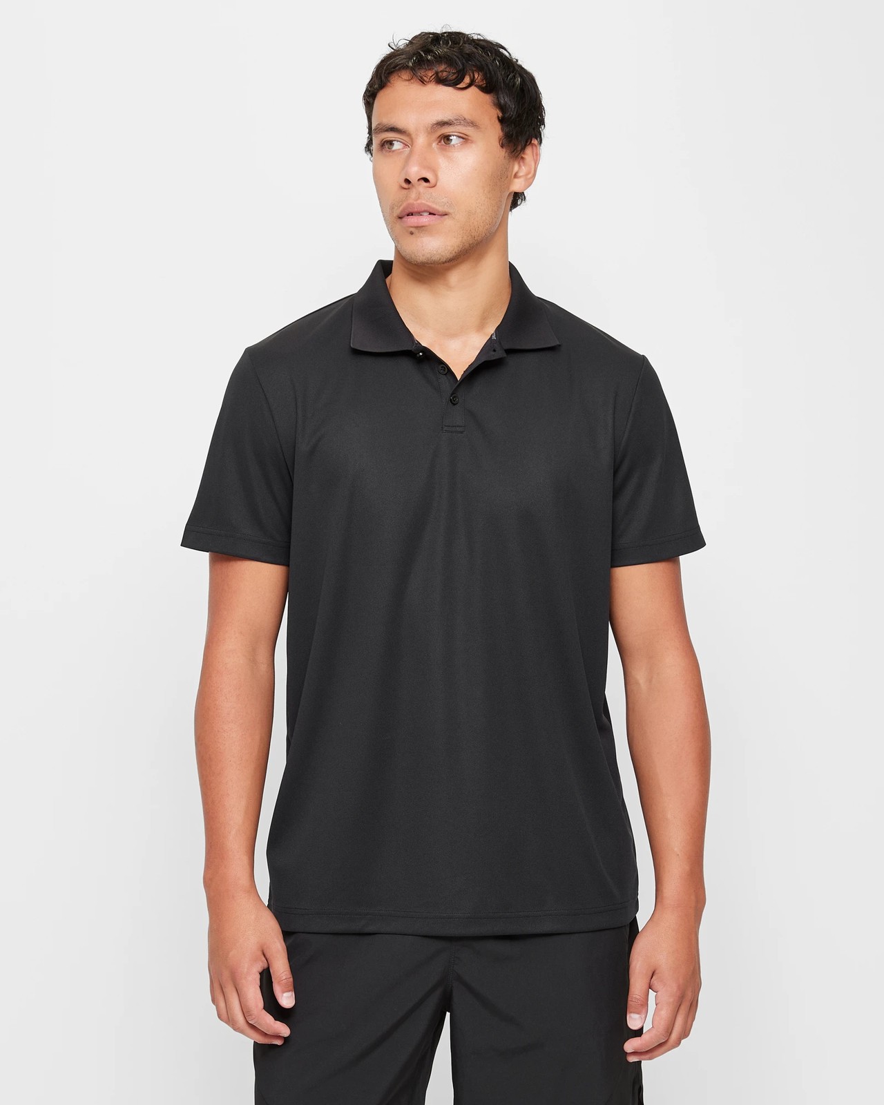 Stay stylish and comfortable with our Men's Active Sports Polo Shirt. Made from lightweight and breathable partly recycled polyester, this shirt is perfect for any athletic activity. The regular fit and moisture-wicking technology ensure that you stay cool and dry throughout your workout. The collared neckline and button-up design give a polished look, while the black speckle pattern adds a touch of style. Shop now and experience the perfect combination of performance and style.