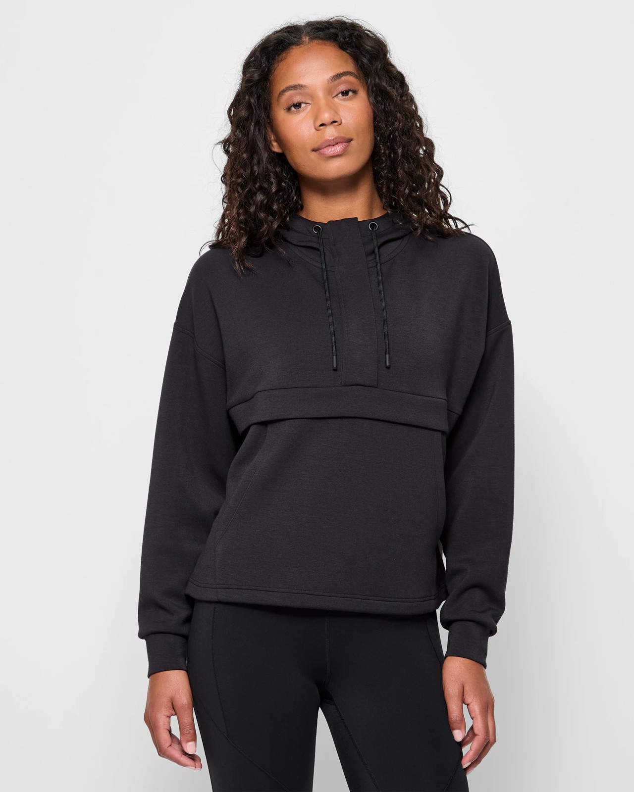 Introducing the Active Studio Lounge Quarter Zip Hoodie – your new favourite for both relaxation and active wear. Made from a fine polyester/modal blend with added elastane, it promises exceptional comfort and stretch. The super soft fabric feels gentle against the skin, making it perfect for all-day wear. Featuring a stylish high neckline combined with a hood and drawstring, along with a hidden quarter zip, it ensures both warmth and style. Long ribbed cuffs, a centre flap, and kangaroo pockets complete the design, adding practicality to this versatile piece. Whether you're lounging at home or heading out for a walk, this hoodie is a must-have. Get yours today and experience the ultimate fusion of comfort and style!