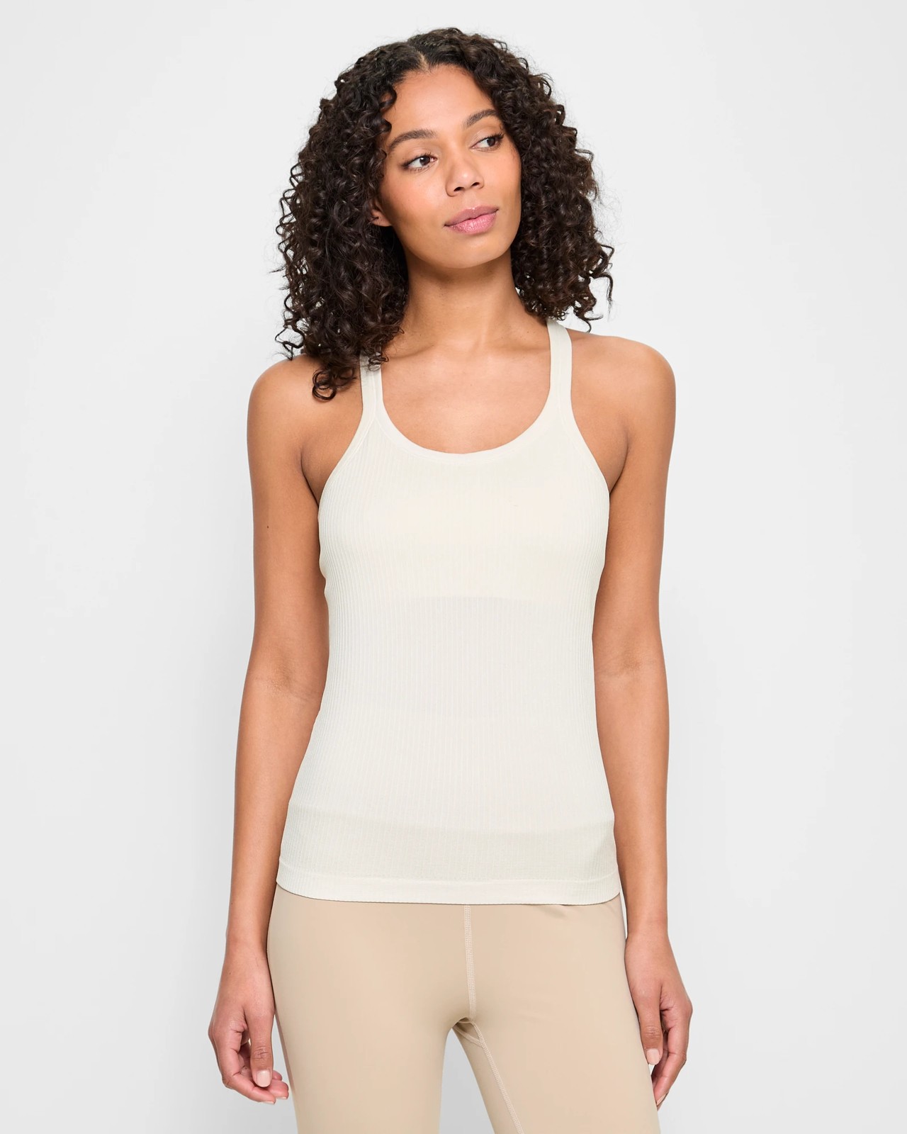 Active Studio Soft Ribbed Tank Top with Shelf Bra - Oatmilk