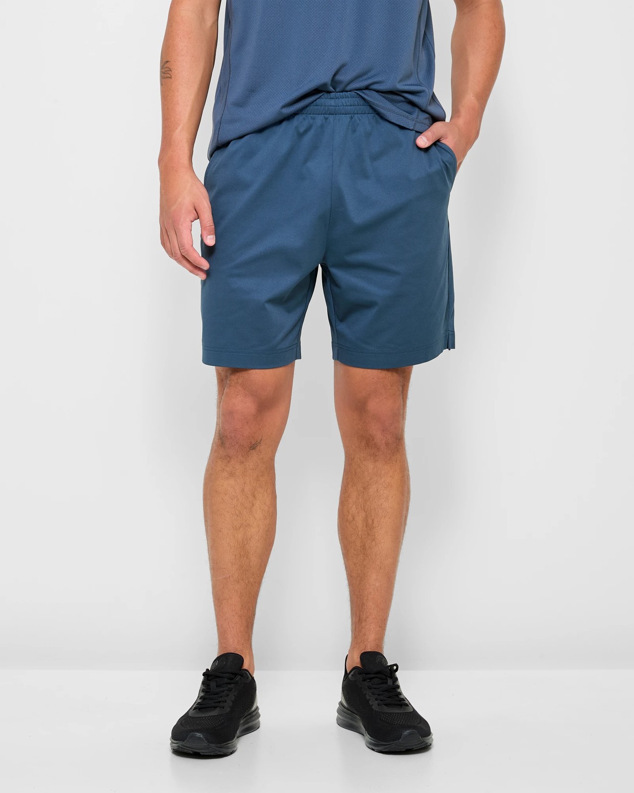 Experience ultimate comfort and style with these Active Training Shorts. Constructed from polyester, that includes recycled materials, they offer moisture-wicking technology to keep you dry during workouts. The regular fit and thick elastic waistband with inner drawstring ensure a secure and adjustable fit. With side pockets for convenience and a stylish mid-length design, these shorts feature side seam splits and a straight hemline. Whether you're hitting the gym or going for a run, these Active Training Shorts are perfect for all physical activities. Treat yourself to lasting comfort and functionality.