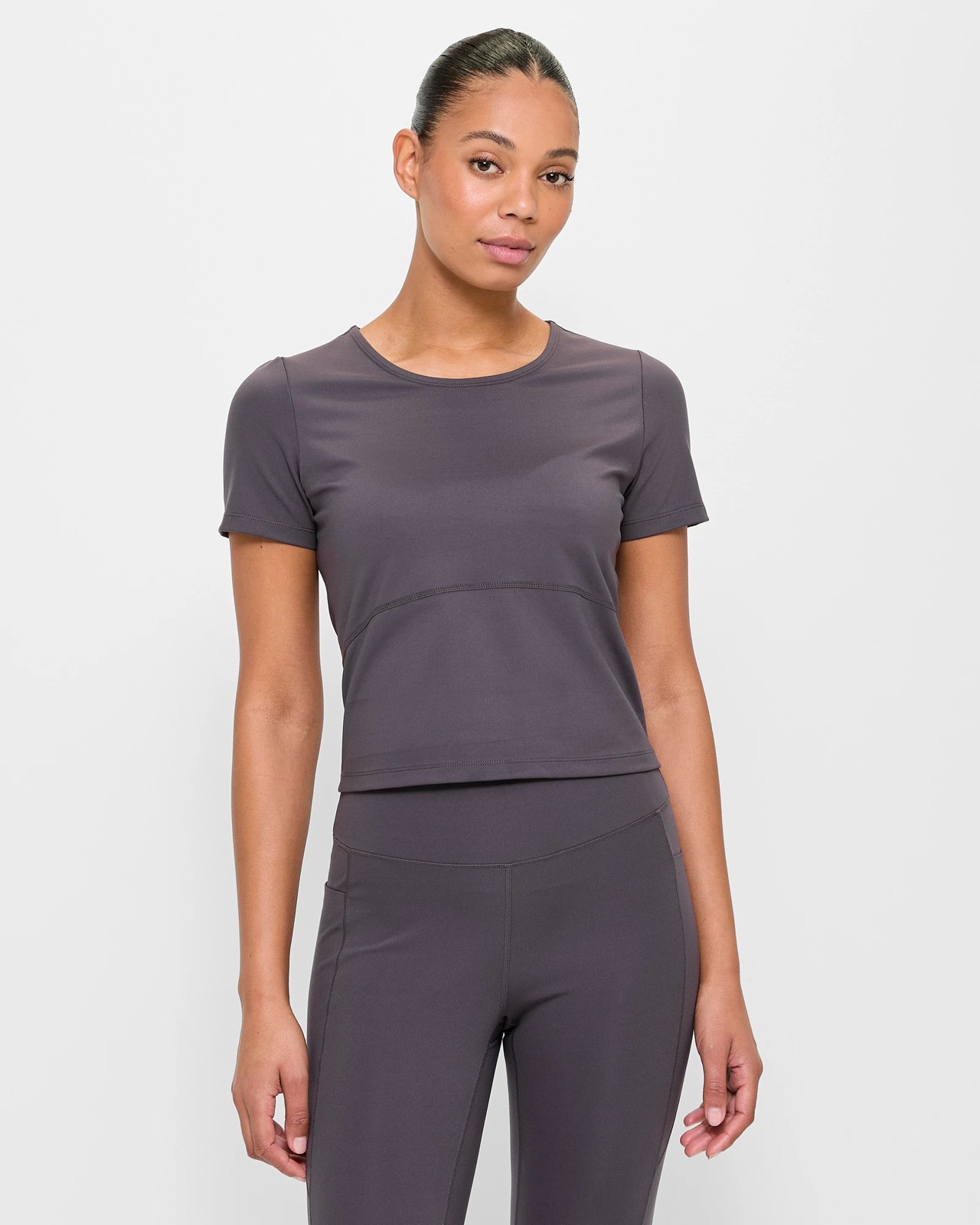 Gear up for your active lifestyle with the Active Workout Fitted T-Shirt. Expertly crafted from a blend of polyester and recycled materials, this tee offers stretch and moisture-wicking properties for ultimate comfort during workouts. The slim fit, round neckline, and stitching details around the stomach and back provide a stylish and supportive fit. Stay dry and focused as you push your limits in this must-have workout essential.