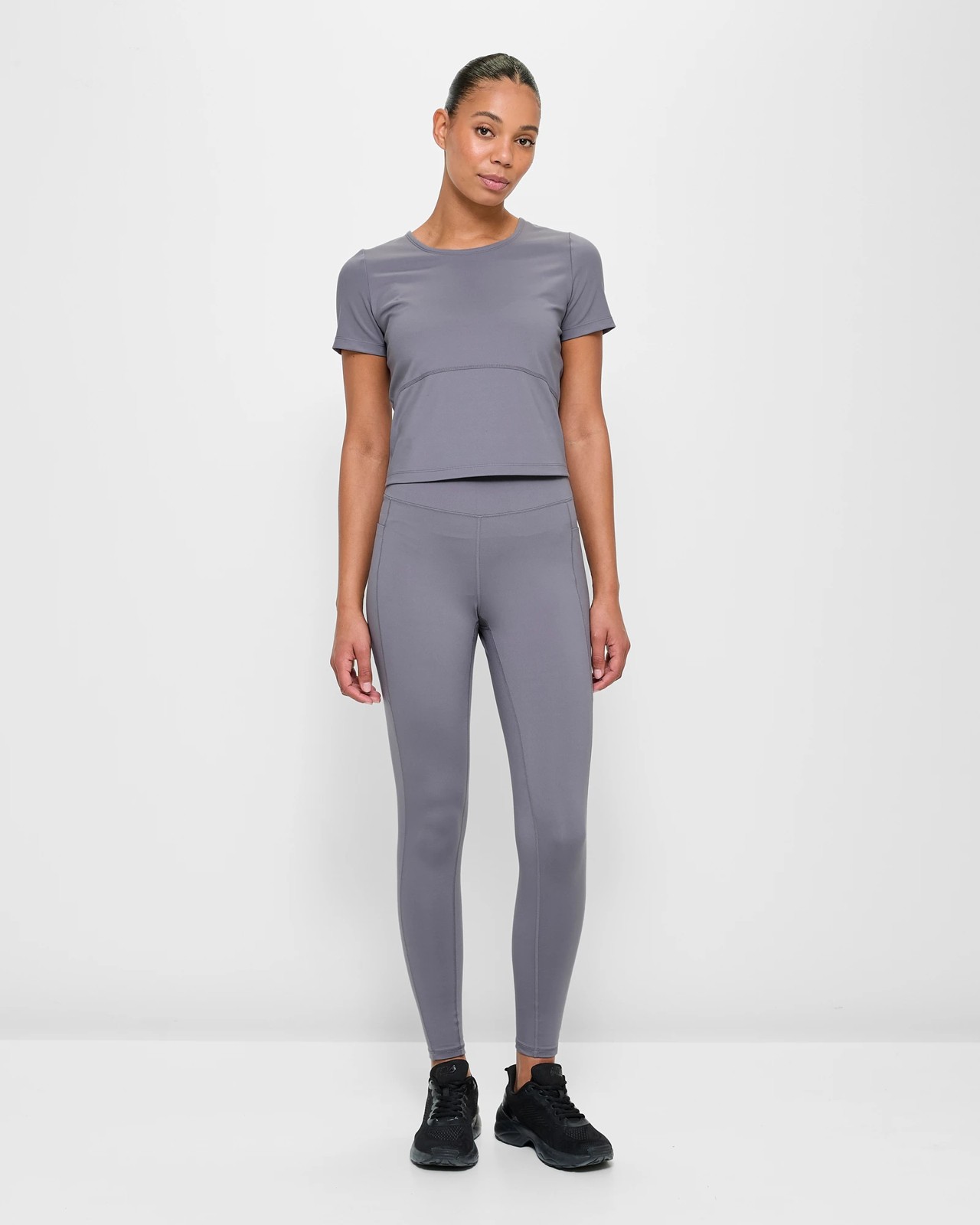 Get ready to move in style with our active workout full length leggings. Crafted from a breathable REPREVE® polyester fabrication, these leggings provide superior moisture wicking and stretch for the ultimate freedom of movement and comfortable fit. Finished with a slim fit, mid rise waist and wide waistband, you'll be able to stay active all day long in complete comfort.