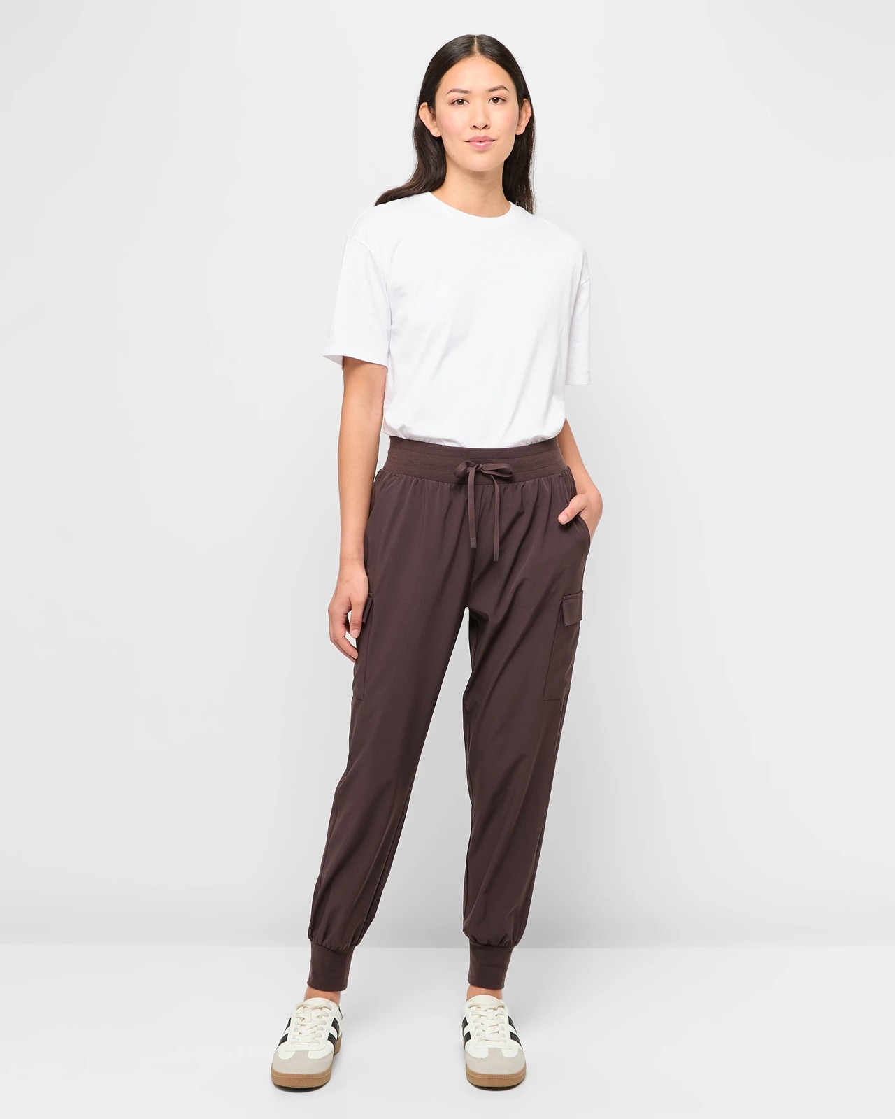 Step into comfort and style with our Active Woven Cargo Pants. Made from a polyester-rich fabric, these cargo pants offer stretch to keep you moving freely throughout your day. The thick ribbed elastic waistband with an external drawstring ensures a perfect fit, while the practical side pockets and fold-over top cargo pockets provide ample storage for all your essentials. With a regular fit and large ribbed cuffs, these trousers offer a sleek, modern look. Imagine breezing through your day in these versatile pants that blend functionality with fashion. Don't miss out - enhance your wardrobe with these must-have cargo pants today!