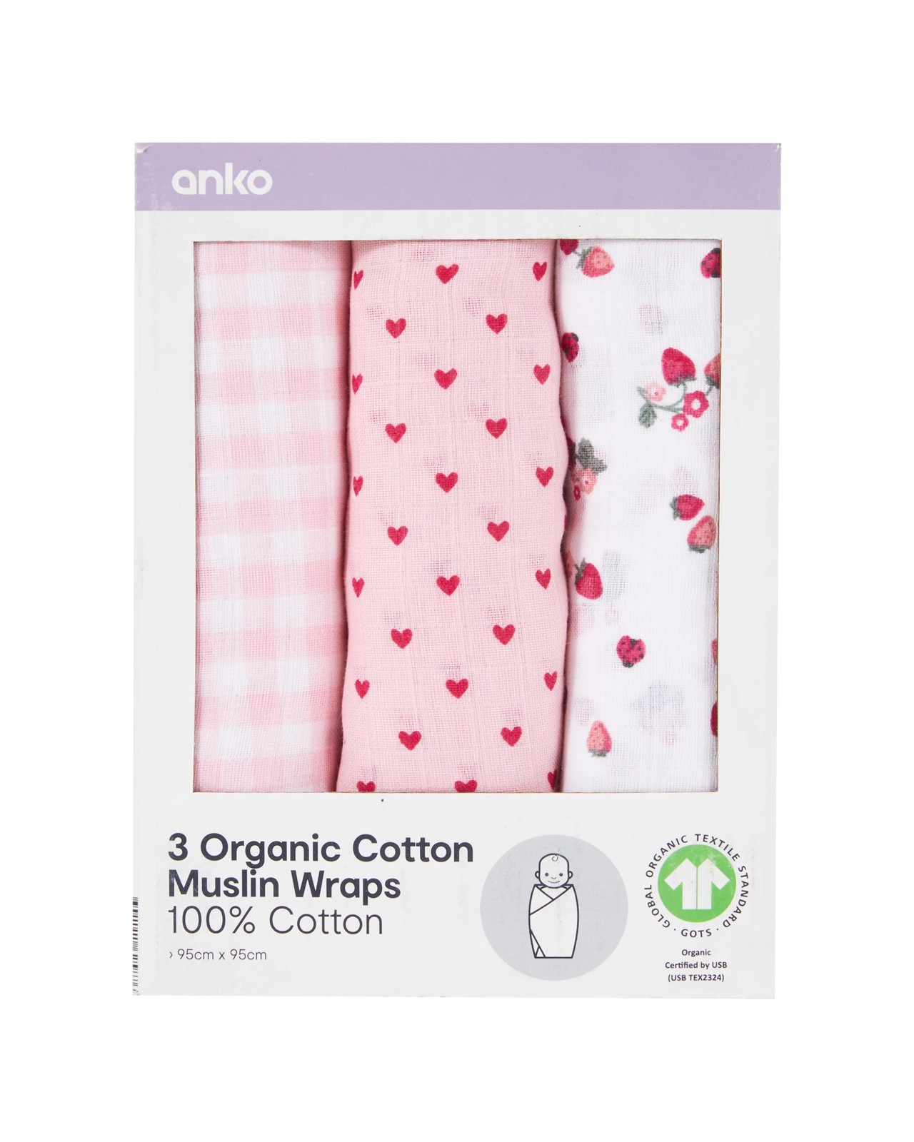 Give your little one the touch of pure softness with this 3 pack of organic cotton muslin cloths. Made from breathable cotton, these lightweight cloths are gentle and soothing for sensitive skin. Ideal for swaddling, nursing or cuddling, they offer both comfort and versatility for busy parents. The delightful all-over print brings a cheerful feel to your baby's essentials, while the organic cotton construction provides confidence in every use. Enjoy dependable quality and a cosy feel each time you reach for these cloths. Make daily care simple and comfortable—choose them for those special moments with your baby.